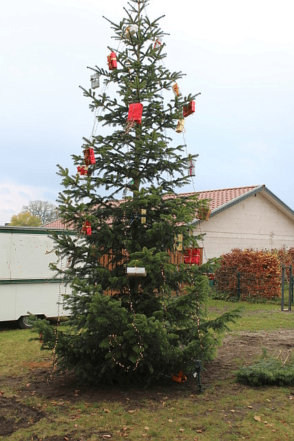 Das zweite Mal wurde ein sehr schöner Baum von Erika Plath zur Verfügung gestellt. Die Erfahrungen aus den vergangenen Jahren sorgten dafür, dass die Aktion reibungslos durchgeführt werden konnte. Neu angefertigte wasserfeste Geschenke wurden von Angelika Statt hergestellt und hängen bereits.