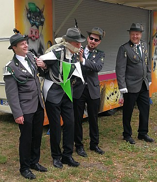 Danach marschierten die Majestäten und „das Volk“ zurück zum Festzelt. Dort spielten die beiden Spielmannszüge noch einige sehr schöne Stücke. Am Abend gab es noch eine tolle Überraschung. Zahlreiche Schützen der Schützenvereine aus dem benachbarten Bergen und Wardböhmen und der Fanfarenzug aus Bergen überraschten die Waller mit ihrem Einmarsch.