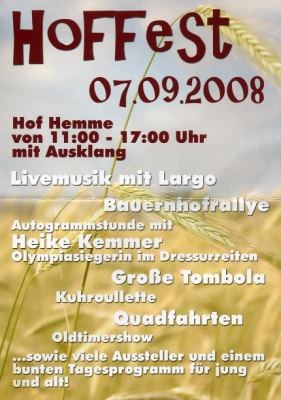 Hier das Programm vom Hoffest bei Hemme: