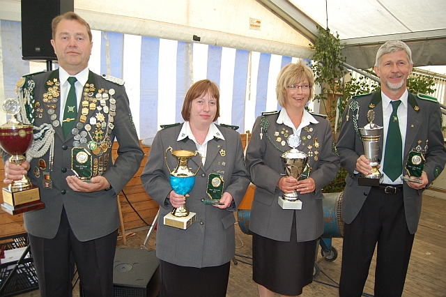 Den Pokal der Könige holte sich in diesem Jahr Wolfgang Helms (links), den Pokal der schwarzen Könige errang Wilhelm Hornbostel (rechts). Bei den Damen ging der Pokal der Damenbesten an Simone Rehwinkel (2. v.r.) und der Pokal der schwarzen Dame an Anja Tanke.