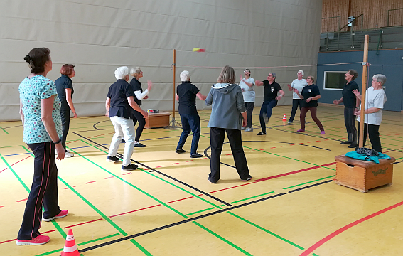 Hier hatte der TuS Eschede ein breitgefächertes Angebot auf die Beine gestellt. Der Besuch der Markmanns Spielzeugstuben begeisterte ebenso wie NordicWalking in und um Eschede geleitet von Beate John. Die kleine Ortsführung durch Eschede brauchte wegen großer Nachfrage mit Klaus Drögemüller und Joachim Gries zwei Begleiter. Marion Rajewski bot Gymnastik mit dem Theraband und Ingrid Lutterloh das Rückschlagspiel Indiaka in der benachbarten Sporthalle an.