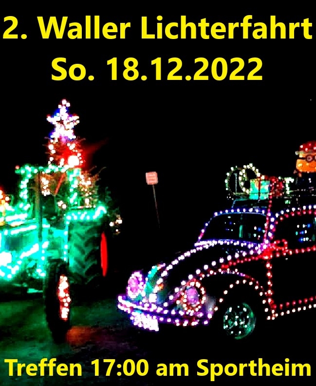 Im kommenden Jahr findet die dritte Lichterfahrt am dritten Advent, 17. Dezember 2023, statt. Die Meißendorfer Organisatoren ihrer Lichterfahrt würden sich freuen, wenn Wallerinnen und Waller auch an ihrer Veranstaltung am Samstag vor dem dritten Advent, 16. 12., teilnehmen würden.