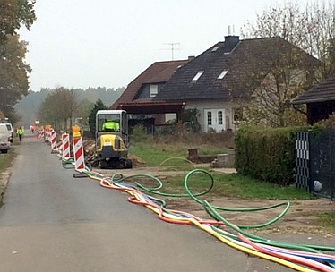 Nachdem der Landkreis Celle (Rotes Gebiet) vor einiger Zeit mit dem Glasfaserausbau hier in Walle gestartet ist, hat jetzt auch die SVO (blaues Gebiet) mit den Erdarbeiten begonnen.