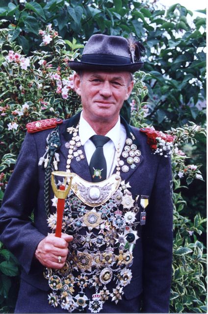 Nach der Festtafel und der offiziellen Verabschiedung des alten Regenten und seiner Regierungsmannschaft, ging es mit klingendem Spiel zum Scheibenstand. Die fünf besten Schützen – sie hatten alle je 30 Ring auf die Scheibe gebracht – schritten zum Stechen, das brachte die Entscheidung. Bester Schütze und somit König wurde Arno Ortmann. Aufgrund seiner beruflichen Tätigkeit erhielt er den Beinamen: „Der Straßenfürst“. Seine Residenz liegt in Winsen.